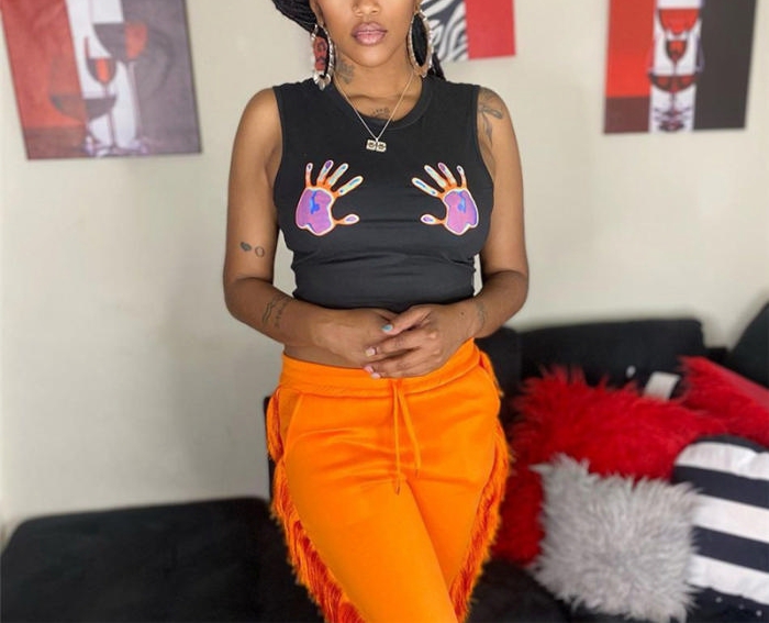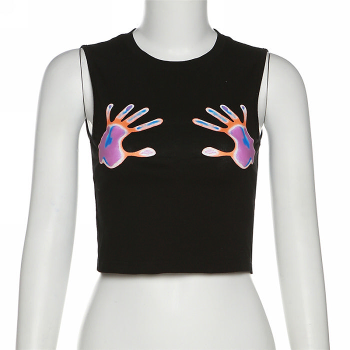 (Real Image)2022 Styles Women Fashion INS Styles Sleeveless Print Tank TopsSKU: #CF49761-1