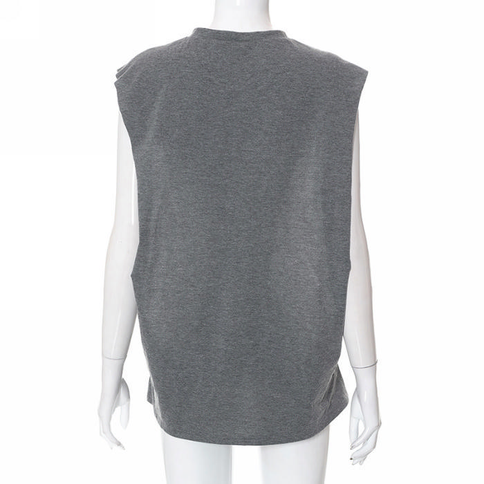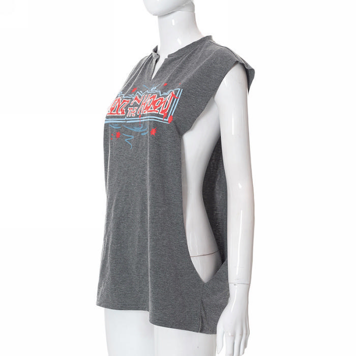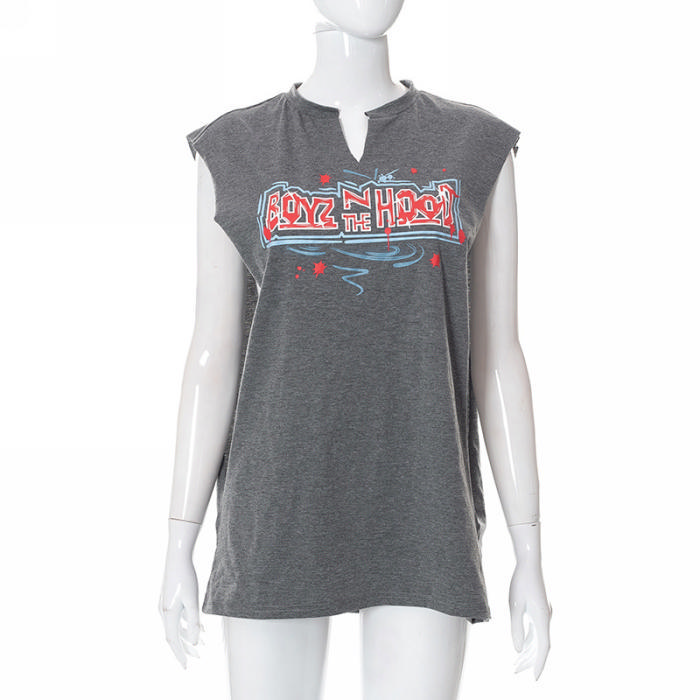 (Real Image)2022 Styles Women Fashion INS Styles Sleeveless Print TeeSKU: #CF47098-1