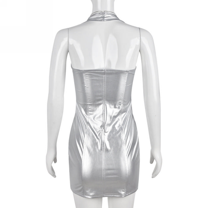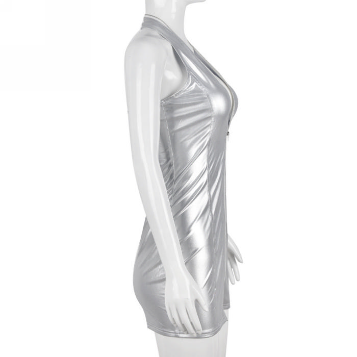 (Real Image)2022 Styles Women Fashion INS Styles Sliver Front Zipper Mini DressSKU: #CF59163-1