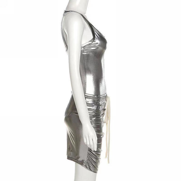 (Real Image)2022 Styles Women Fashion INS Styles Sliver Two Piece DressSKU: #RO002-1