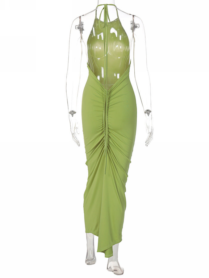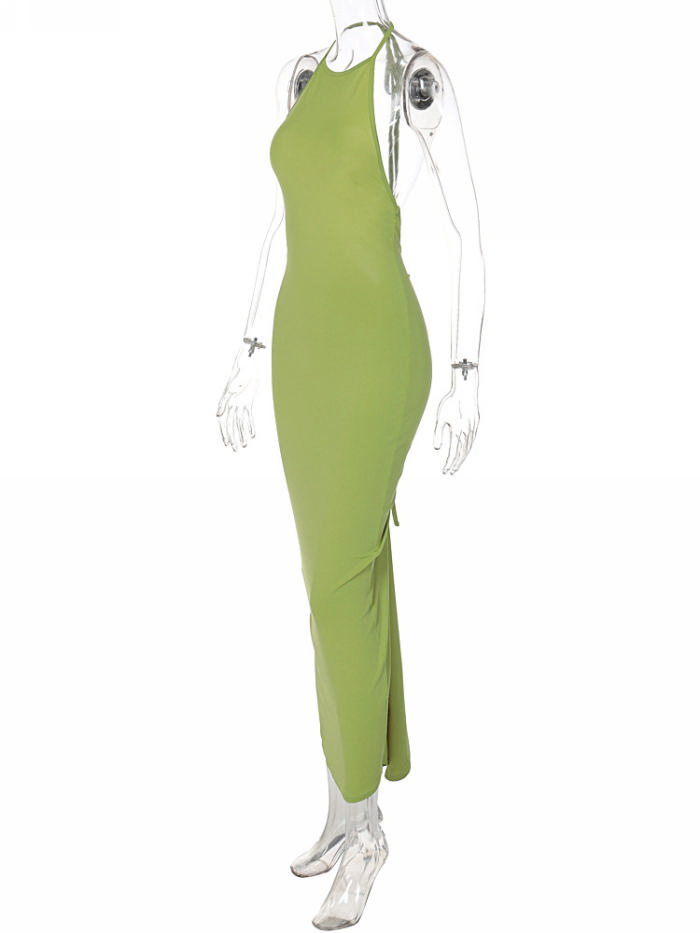 (Real Image)2022 Styles Women Fashion INS Styles Solid Color Blackless Maxi DressSKU: #CF22654-1