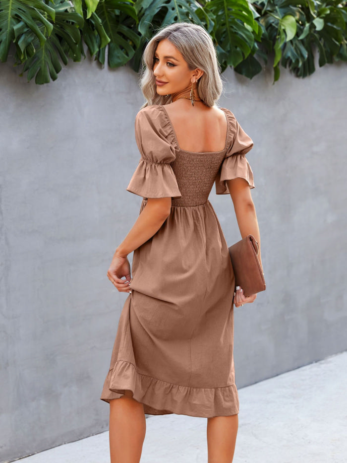 (Real Image)2022 Styles Women Fashion INS Styles Solid Color Bohemian Midi DressSKU: #XF28364-6