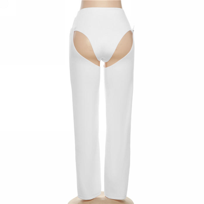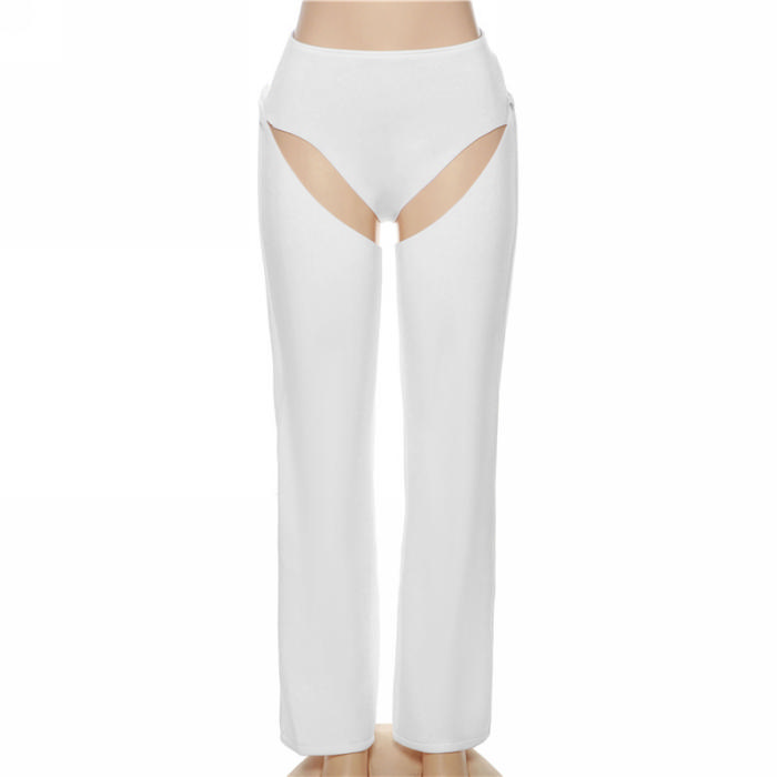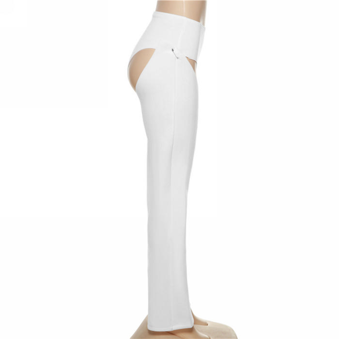 (Real Image)2022 Styles Women Fashion INS Styles Solid Color Cut Out Long PantsSKU: #CF49698-1