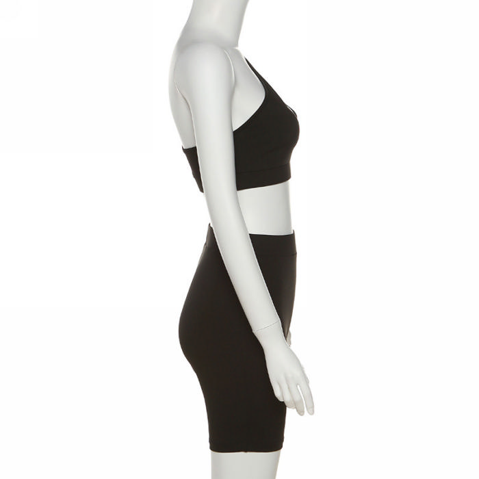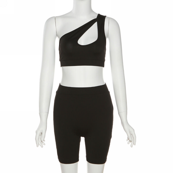 (Real Image)2022 Styles Women Fashion INS Styles Solid Color Cut Out Short Two Piece SuitSKU: #CF49701-1
