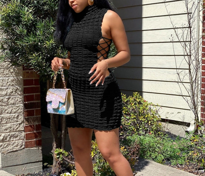 (Real Image)2022 Styles Women Fashion INS Styles Solid Color Double Lace Up Sleeveless Mini DressSKU: #OM0235-3
