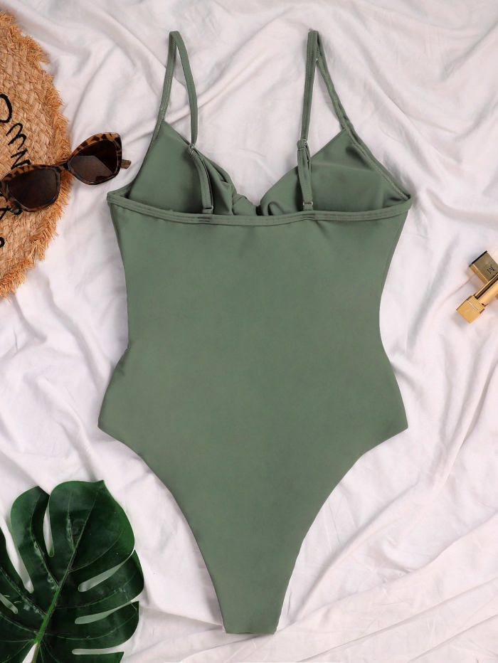 (Real Image)2022 Styles Women Fashion INS Styles Solid Color Front Bandage One Piece SwimwearSKU: #OEM6537-1