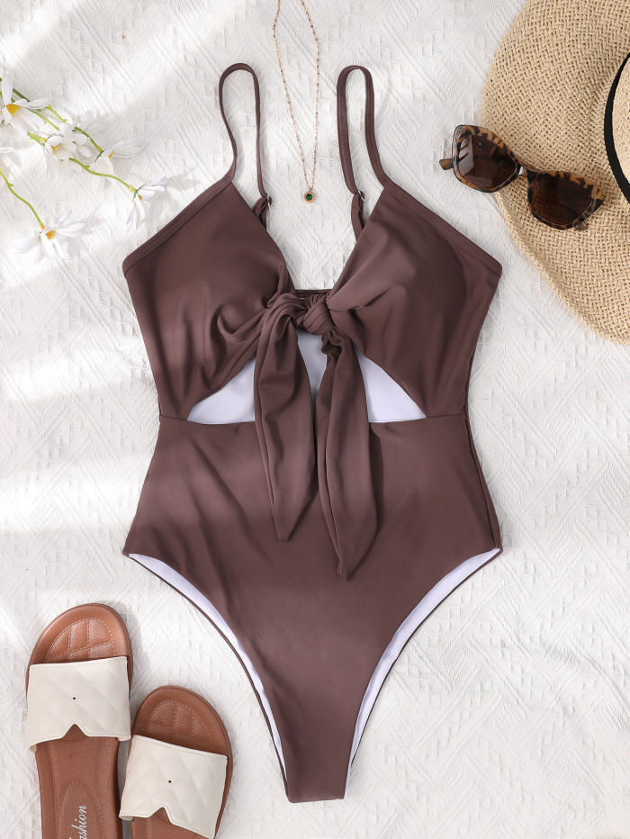 (Real Image)2022 Styles Women Fashion INS Styles Solid Color Front Bandage One Piece SwimwearSKU: #OEM6537-4