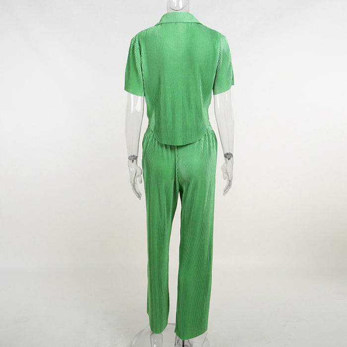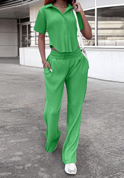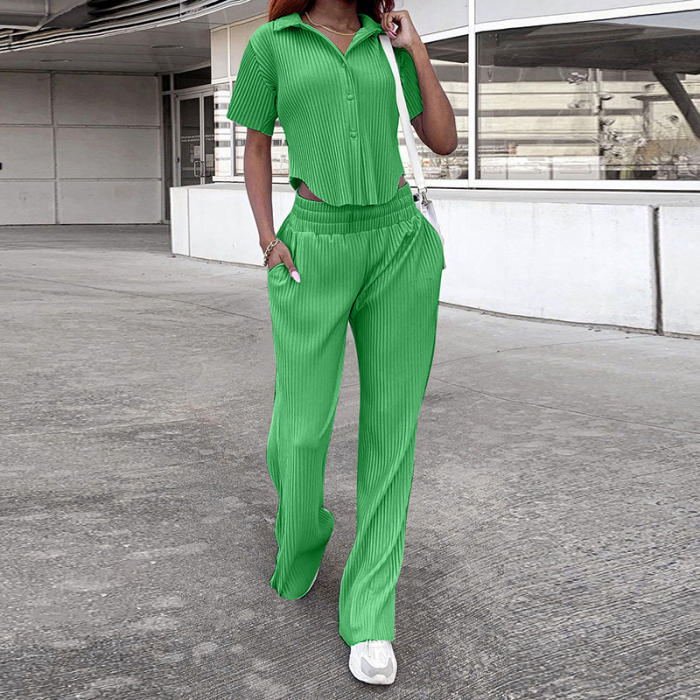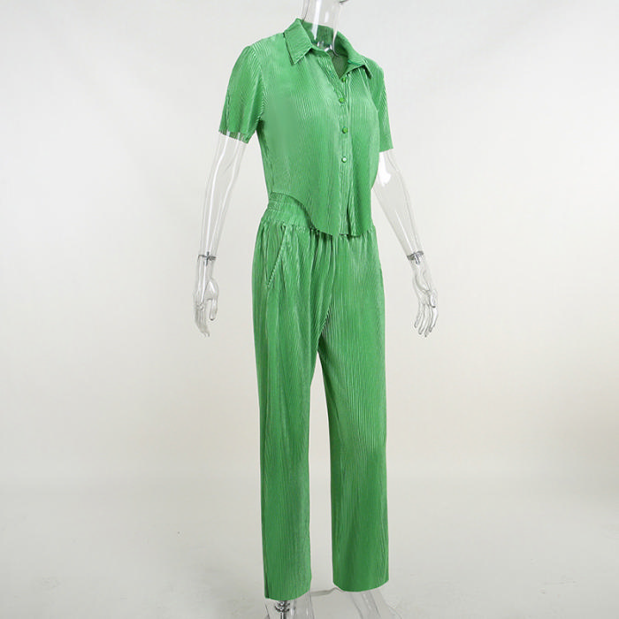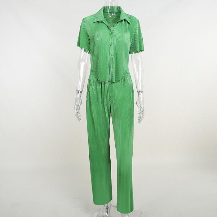 (Real Image)2022 Styles Women Fashion INS Styles Solid Color Front Button Shirts+Long Pants Two Piece SuitSKU: #OU0095-1