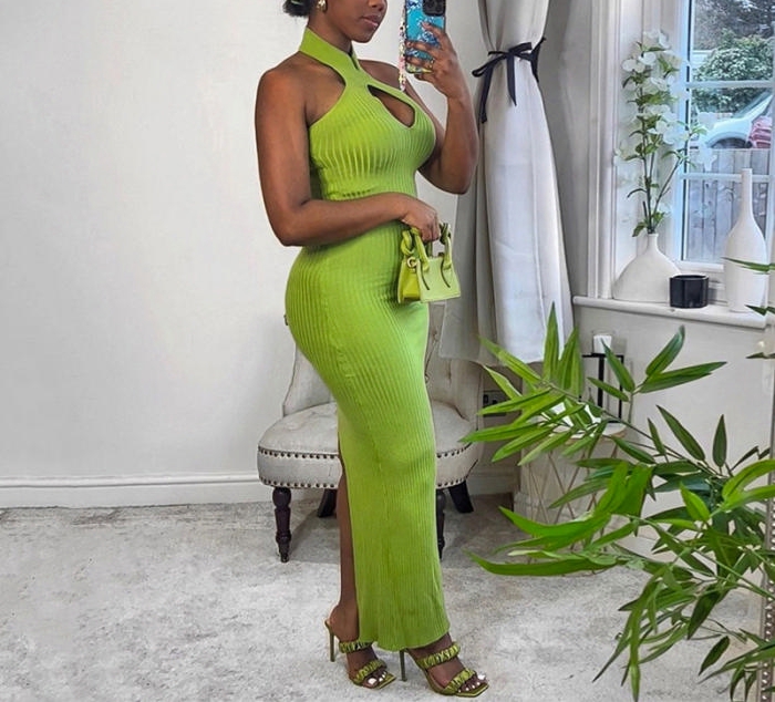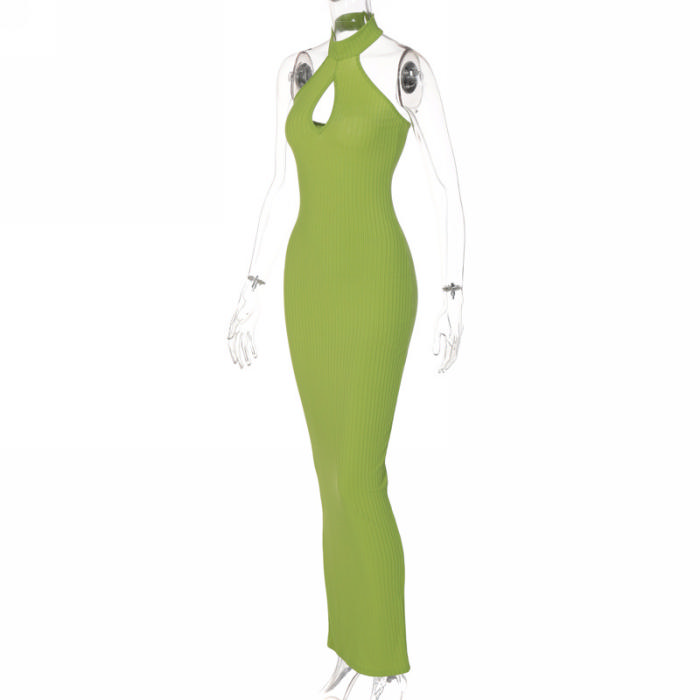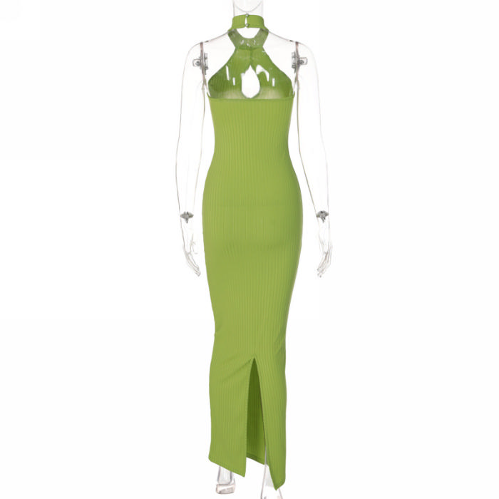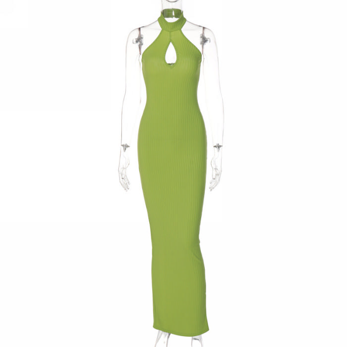 (Real Image)2022 Styles Women Fashion INS Styles Solid Color Halter Backless Maxi DressSKU: #CF22595-1
