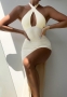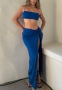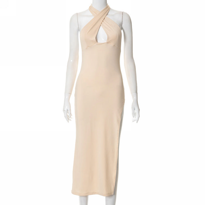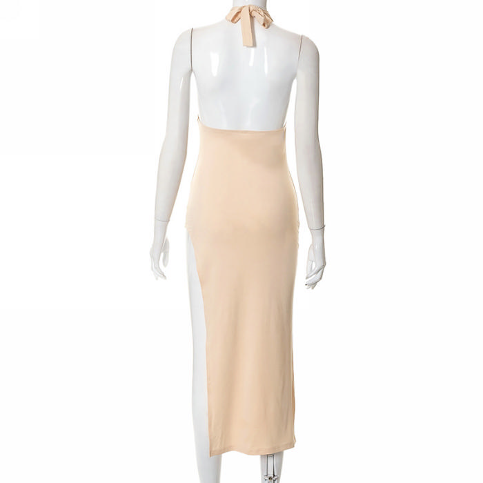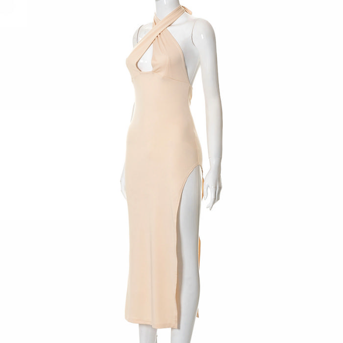 (Real Image)2022 Styles Women Fashion INS Styles Solid Color Halter High Split Maxi DressSKU: #OU0102-1