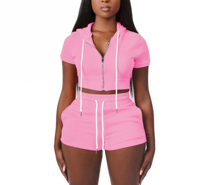 (Real Image)2022 Styles Women Fashion INS Styles Solid Color Hoodie Front Zipper Short Two Piece SuitSKU: #CF71004-2