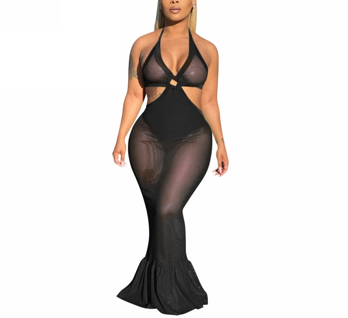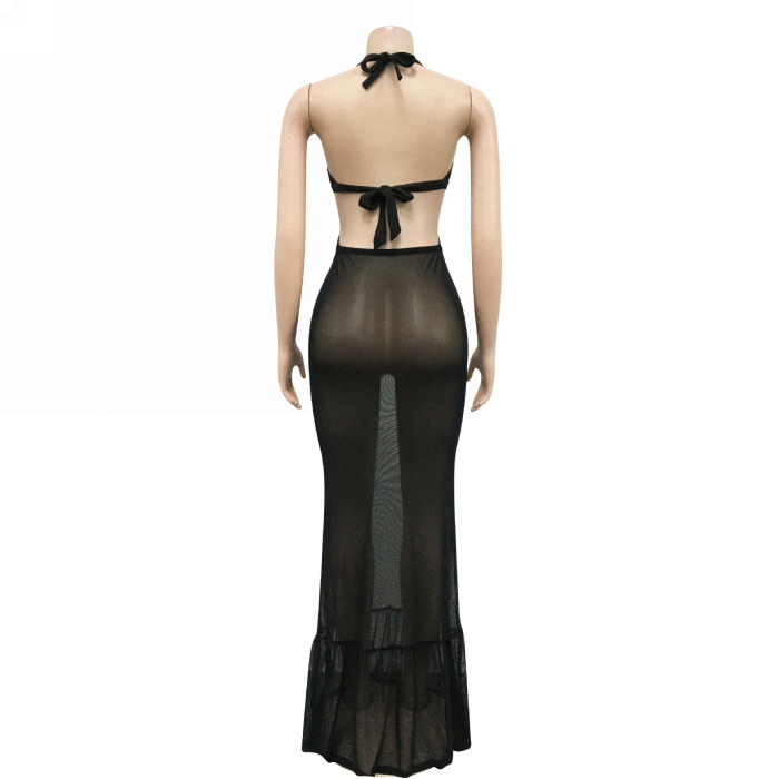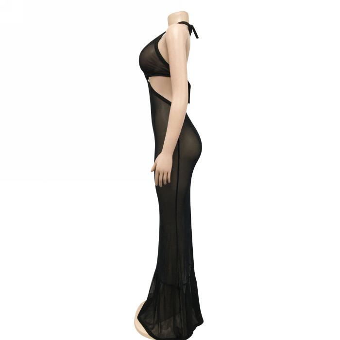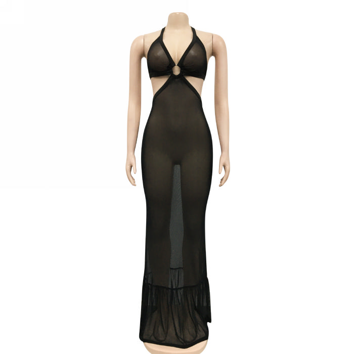 (Real Image)2022 Styles Women Fashion INS Styles Solid Color Mesh Maxi DressSKU: #RO004-1