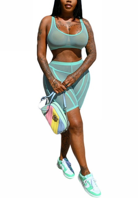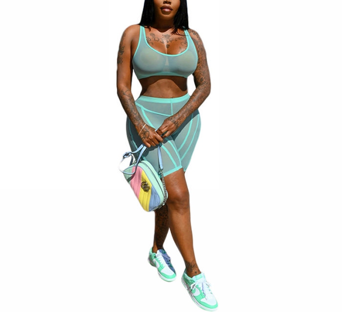 (Real Image)2022 Styles Women Fashion INS Styles Solid Color Mesh Short Two Piece SuitSKU: #OEM6562-5
