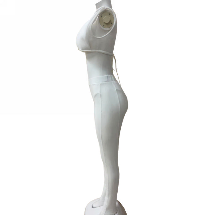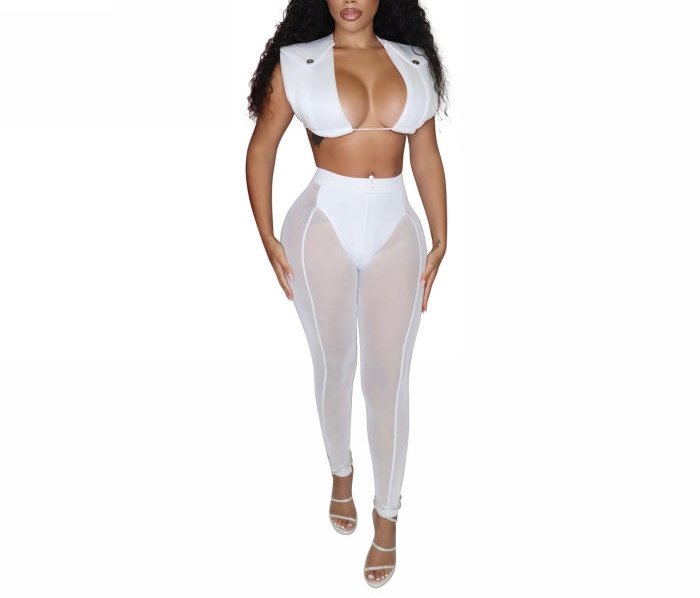 (Real Image)2022 Styles Women Fashion INS Styles Solid Color Mesh Two Piece SuitSKU: #XF23025-1