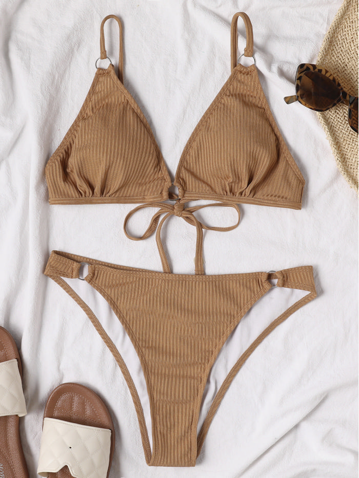 (Real Image)2022 Styles Women Fashion INS Styles Solid Color Rib Bikini SetSKU: #OEM6532-3