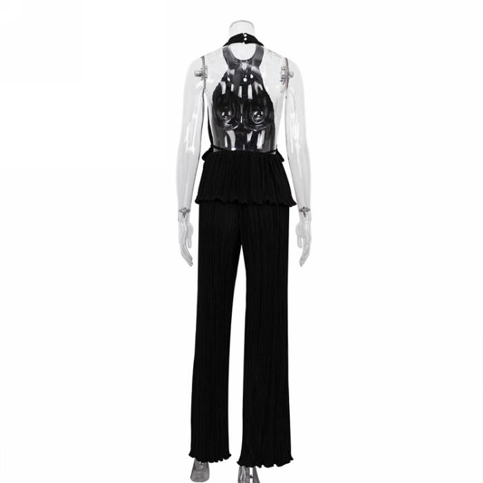 (Real Image)2022 Styles Women Fashion INS Styles Solid Color Ruffle Backless Two Piece SuitSKU: #OM0195-2