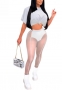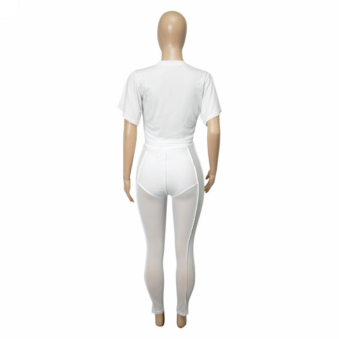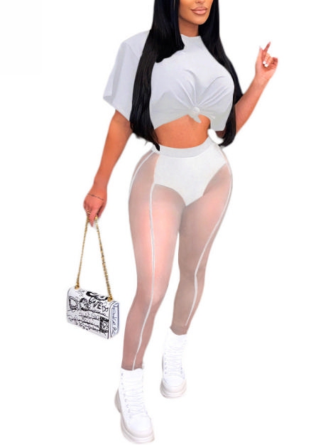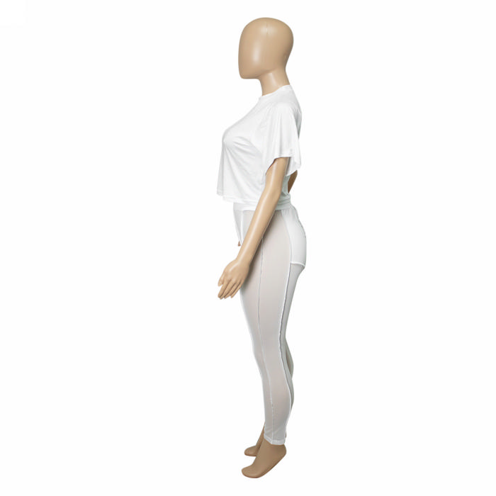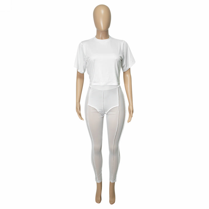 (Real Image)2022 Styles Women Fashion INS Styles Solid Color Short Sleeve Tee+Mesh Long Pants Two Piece SuitSKU: #OM0213-1