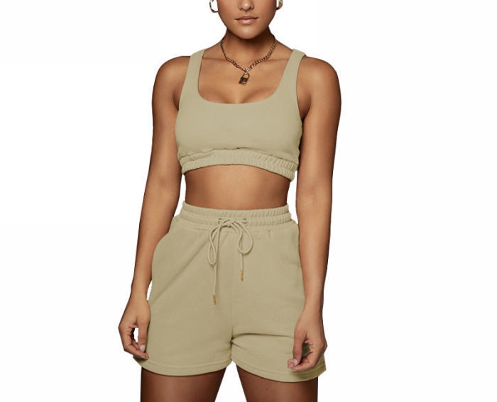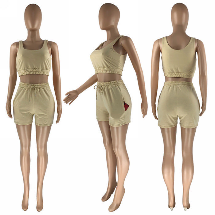(Real Image)2022 Styles Women Fashion INS Styles Solid Color Short Two Piece SuitSKU: #CF71007-10