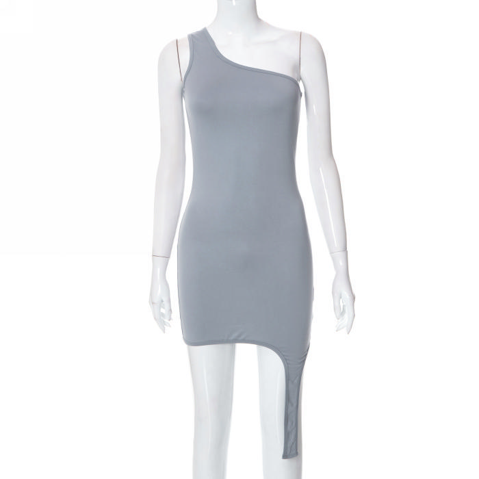 (Real Image)2022 Styles Women Fashion INS Styles Solid Color Single Shoulder Irregular Mini DressSKU: #CF68063-1