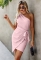 (Real Image)2022 Styles Women Fashion INS Styles Solid Color Single Shoulder Mini Dress With Waist TieSKU: #XF28363-1