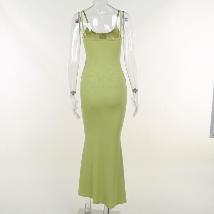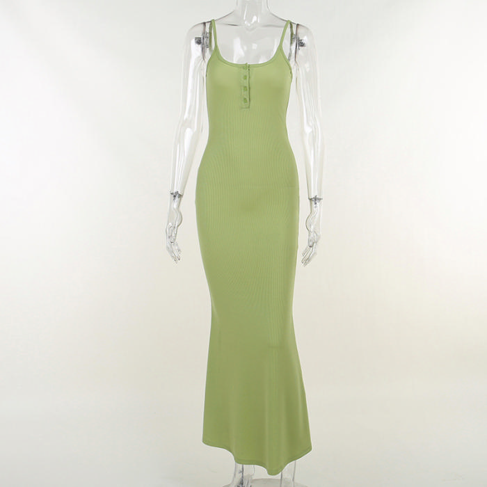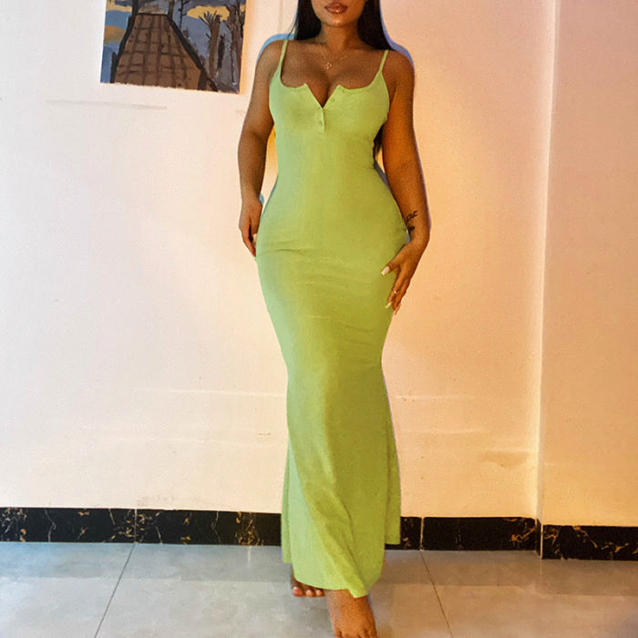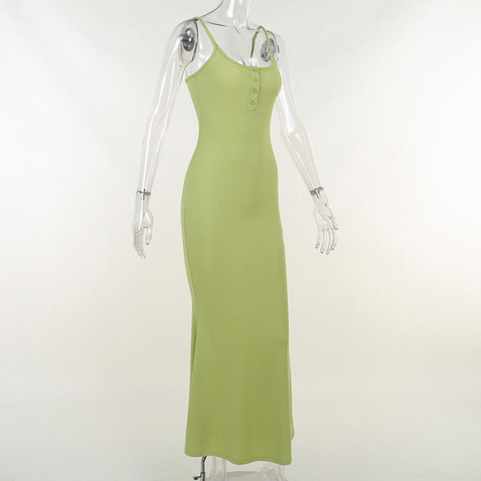 (Real Image)2022 Styles Women Fashion INS Styles Solid Color Strap Front Button Maxi DressSKU: #XF92563-1