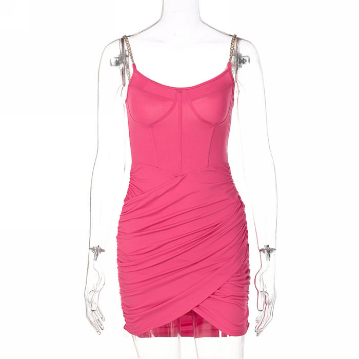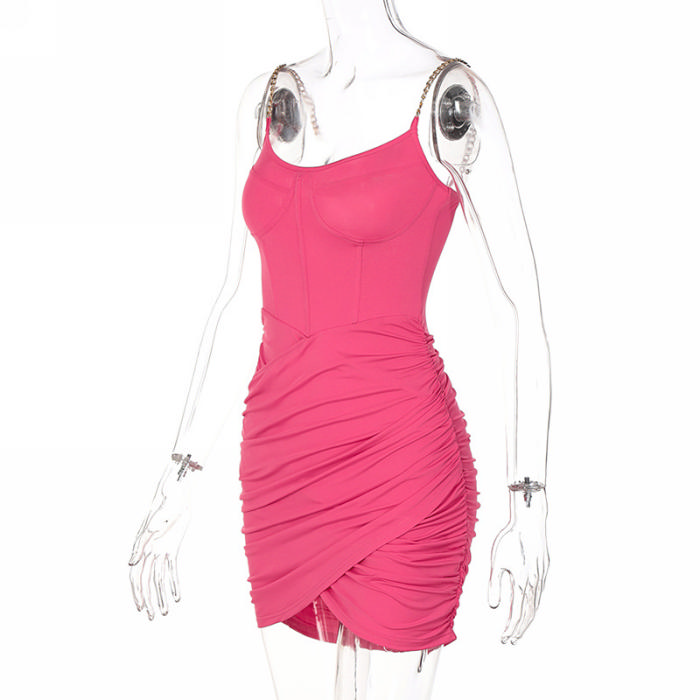 (Real Image)2022 Styles Women Fashion INS Styles Solid Color Strap Irregular Mini DressSKU: #CF22653-1