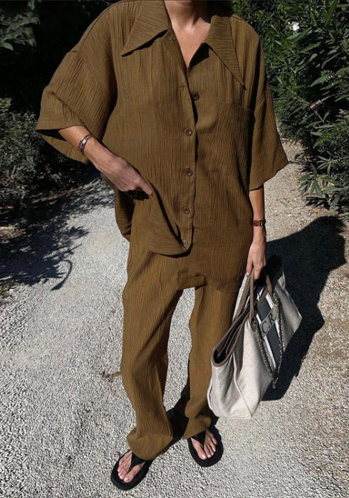 (Real Image)2022 Styles Women Fashion INS Styles Solid Color Two Piece SuitSKU: #CF72024-2