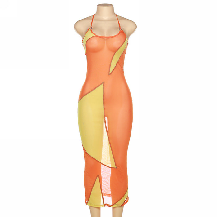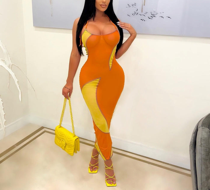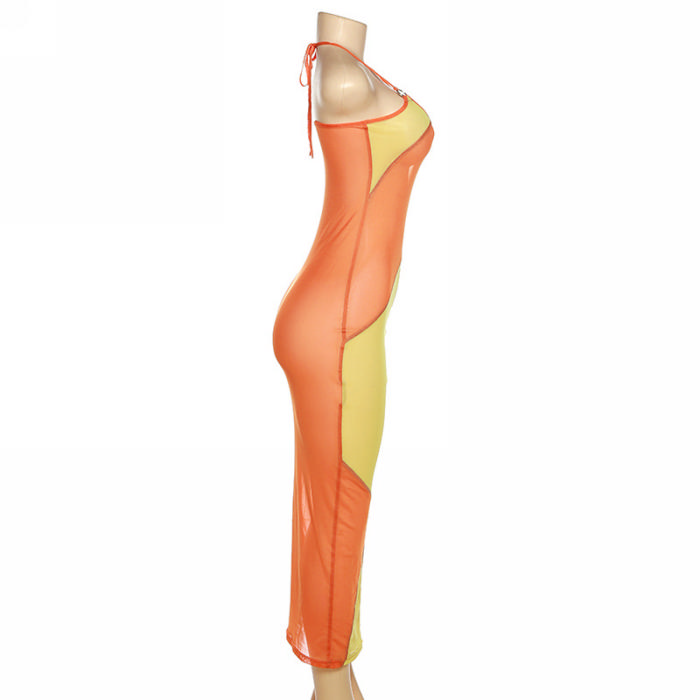 (Real Image)2022 Styles Women Fashion INS Styles Strap Contrast Color Maxi DressSKU: #CF48659-1
