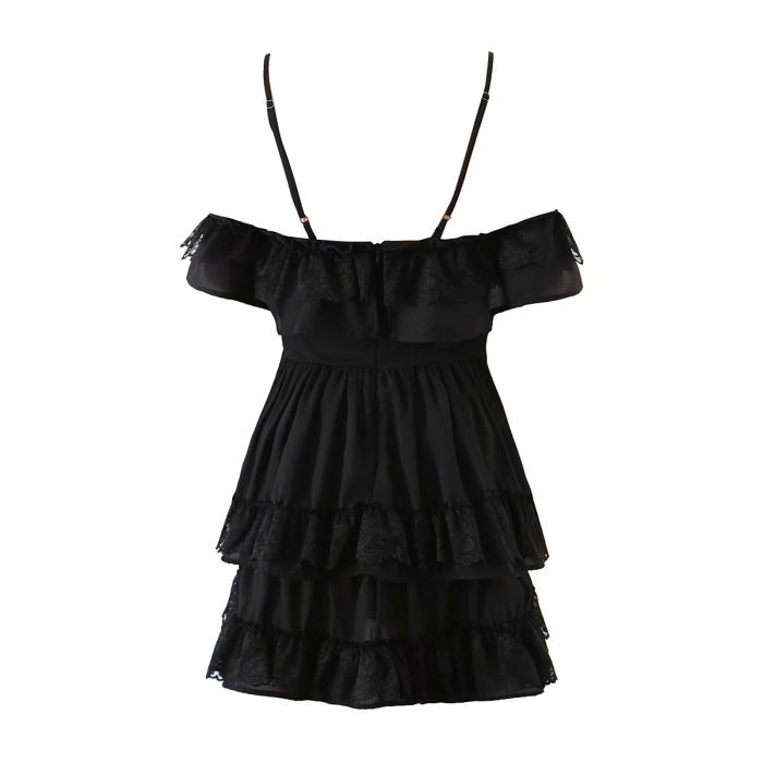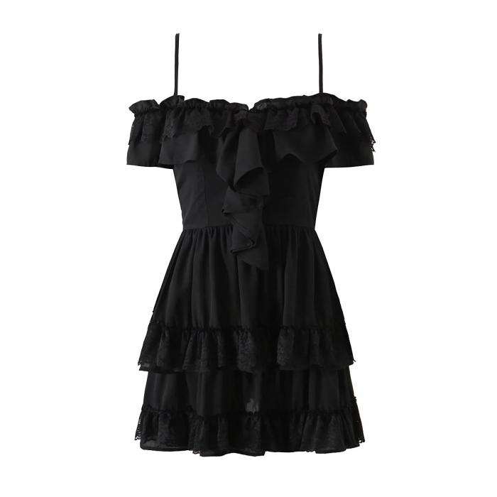 (Real Image)2022 Styles Women Fashion INS Styles Strap Ruffle White Lace Hem Mini DressSKU: #CF08817-2