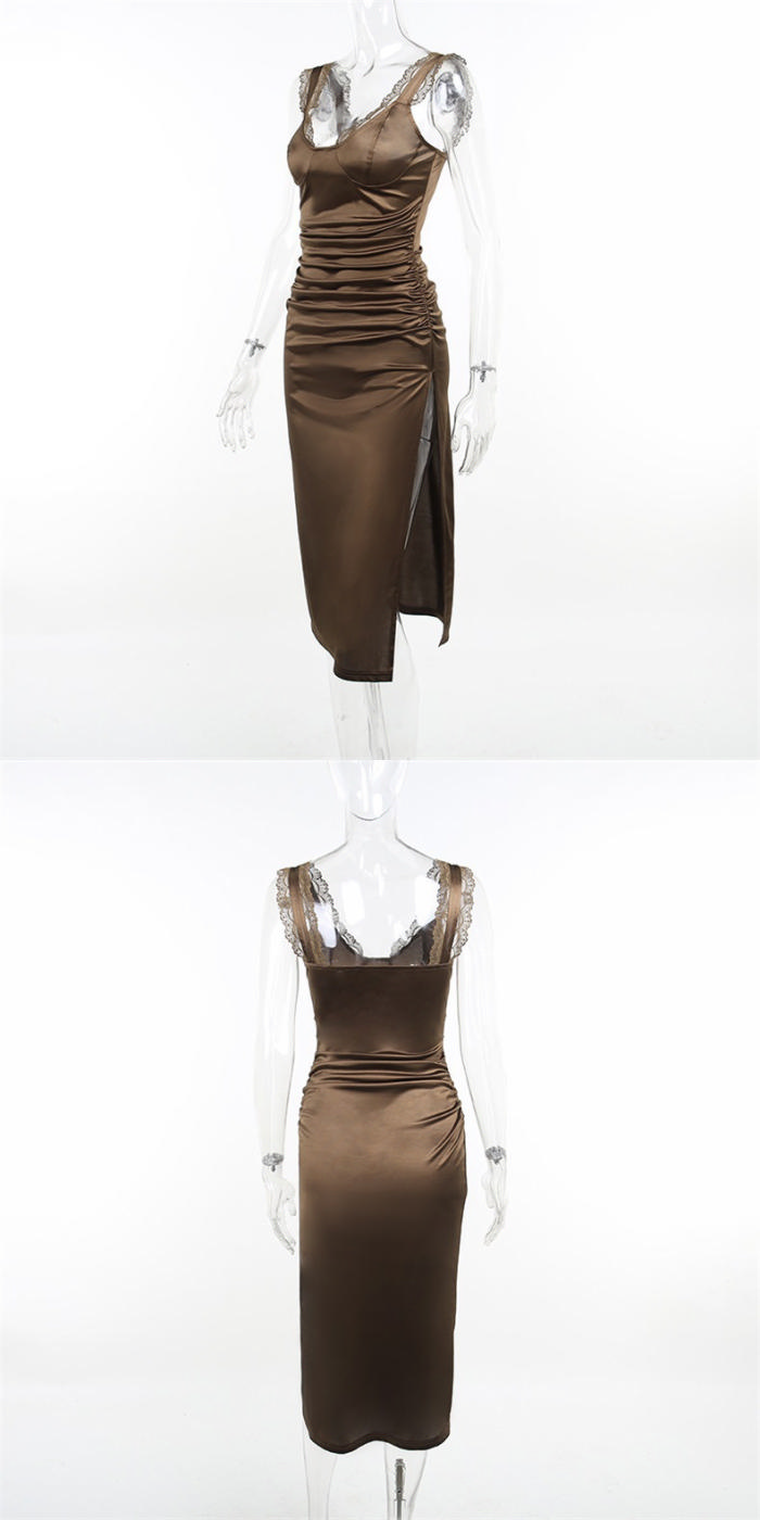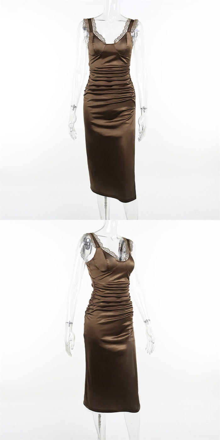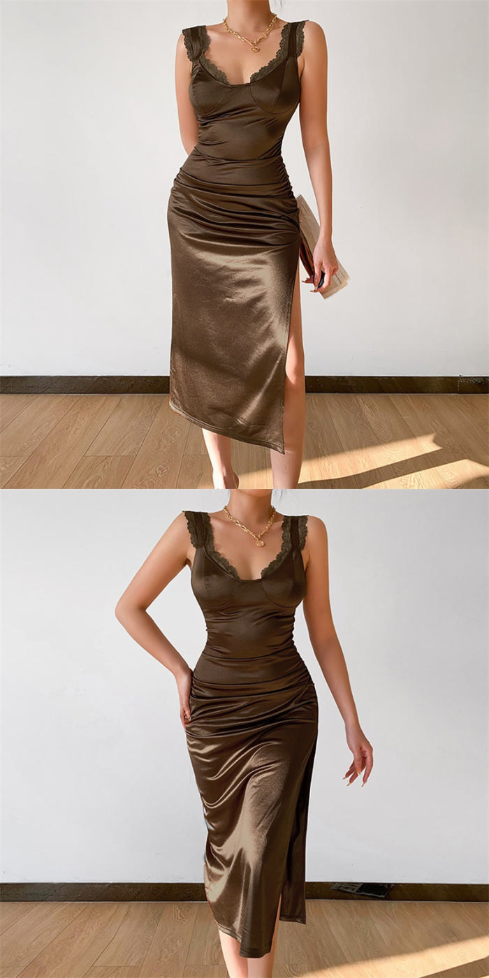 (Real Image)2022 Styles Women Fashion INS Styles Strap Silk Midi DressSKU: #XF92503-1