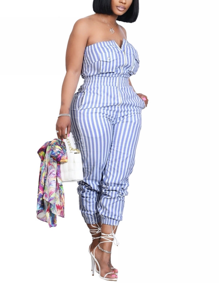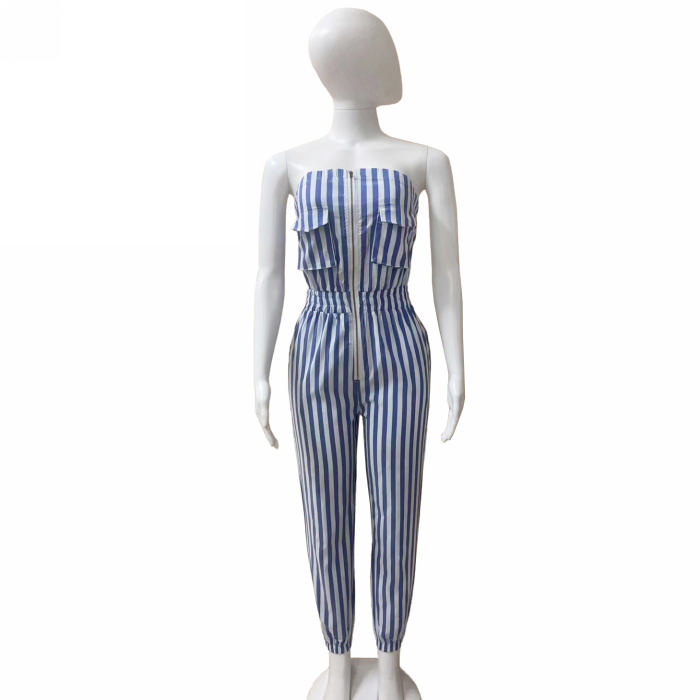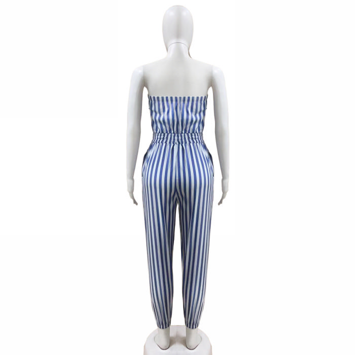 (Real Image)2022 Styles Women Fashion INS Styles Striped Tube JumpsuitSKU: #XF23026-1