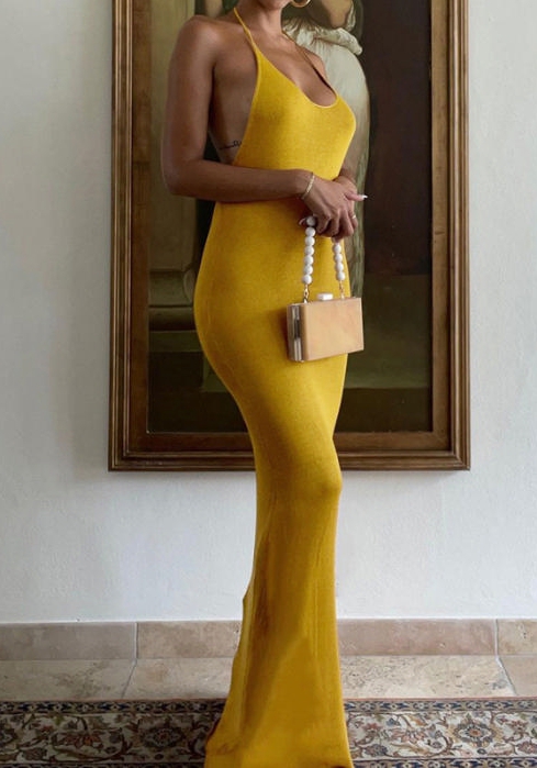 (Real Image)2022 Styles Women Fashion INS Styles Summer Backless Maxi DressSKU: #CF22620-1