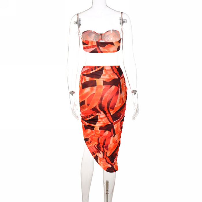 (Real Image)2022 Styles Women Fashion INS Styles Summer Orange Two Piece DressSKU: #CF22656-1
