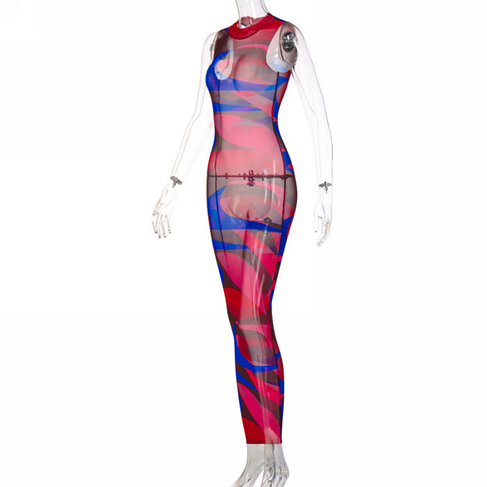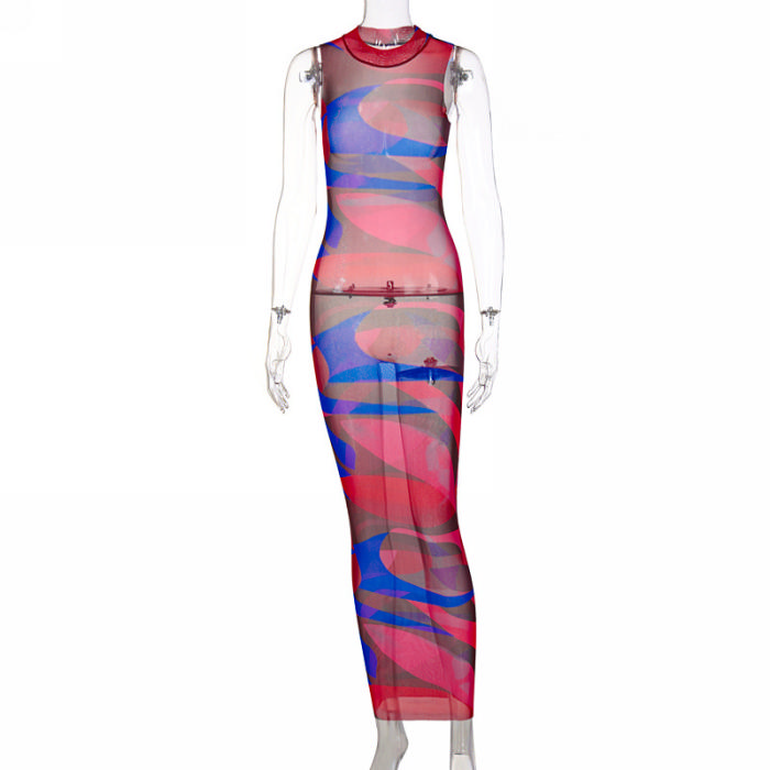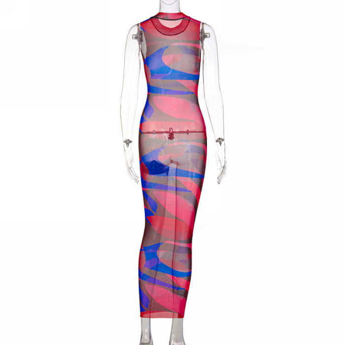 (Real Image)2022 Styles Women Fashion INS Styles Summer Print Sleeveless Maxi DressSKU: #RO027-1