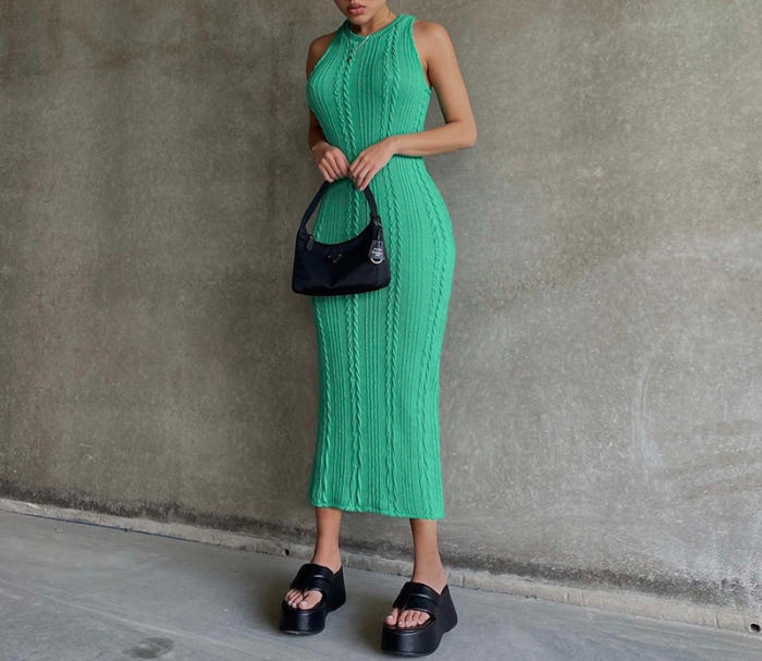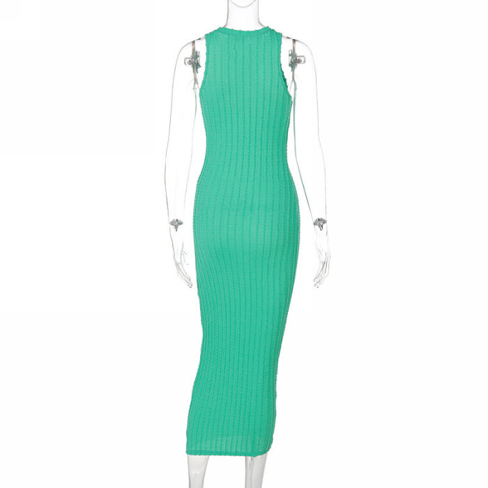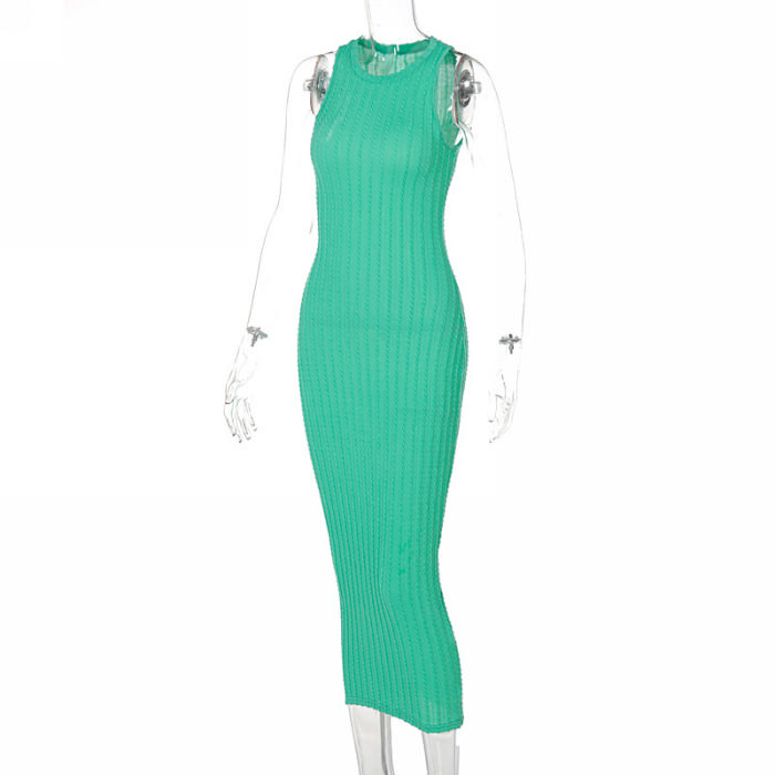 (Real Image)2022 Styles Women Fashion INS Styles Summer Rib Maxi DressSKU: #CF22629-3