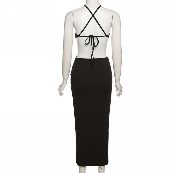 (Real Image)2022 Styles Women Fashion INS Styles Summer Tie Backless Maxi DressSKU: #RO024-2