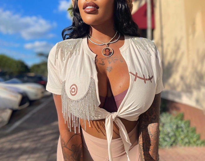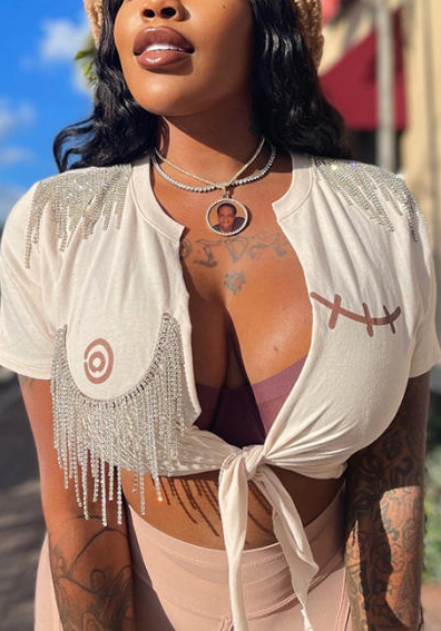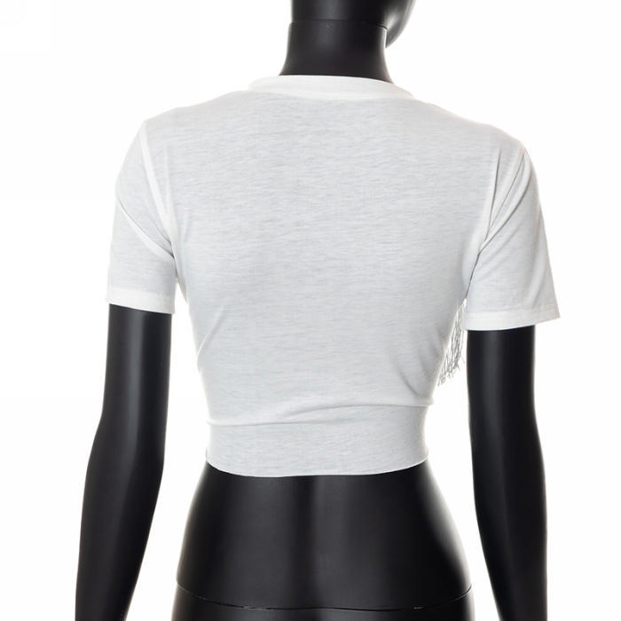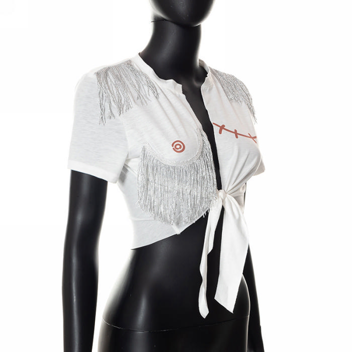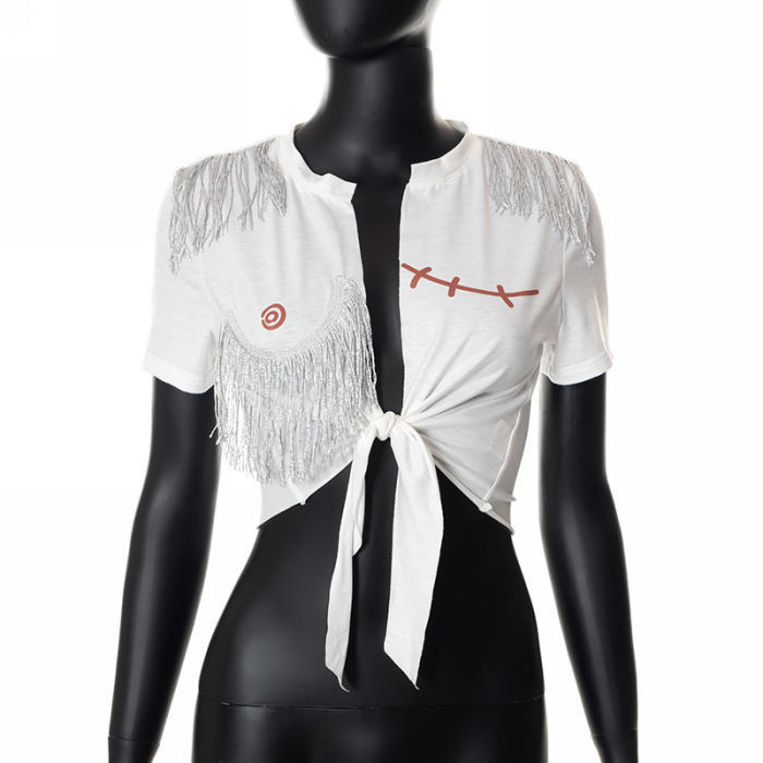 (Real Image)2022 Styles Women Fashion INS Styles Tassel Print TeeSKU: #CF47113-1