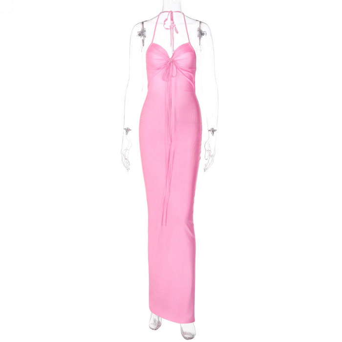 (Real Image)2022 Styles Women Fashion INS Styles Tie Backless Maxi DressSKU: #CF22727-1