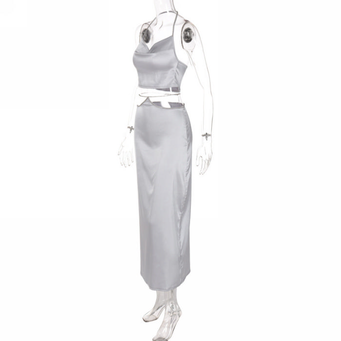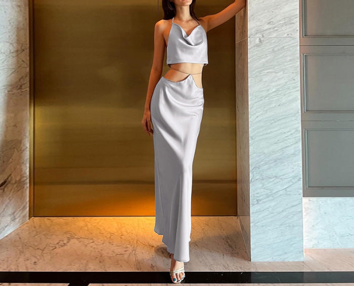 (Real Image)2022 Styles Women Fashion INS Styles Tie Maxi DressSKU: #CF22695-1