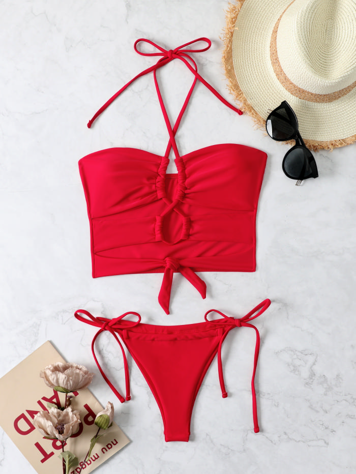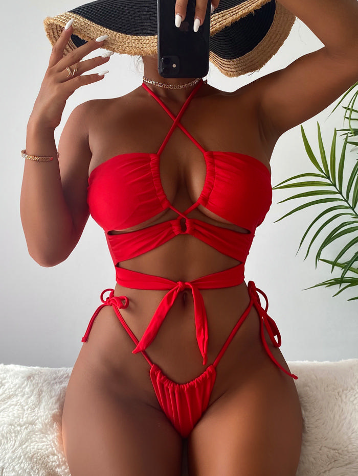 (Real Image)2022 Styles Women Fashion INS Styles Tie One Piece SwimwearSKU: #OU0074-1