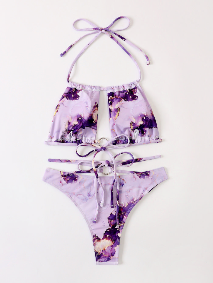 (Real Image)2022 Styles Women Fashion INS Styles Tie Purple Bikini SetSKU: #CF31143-1