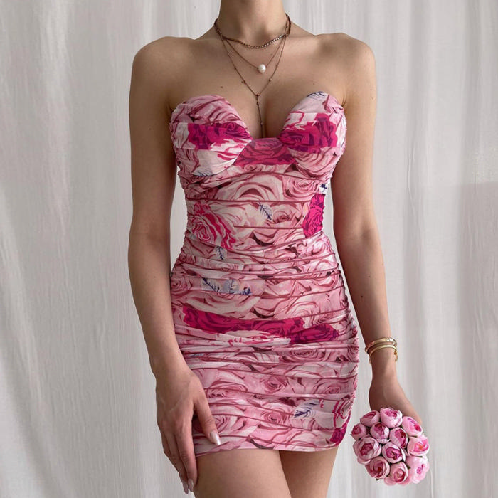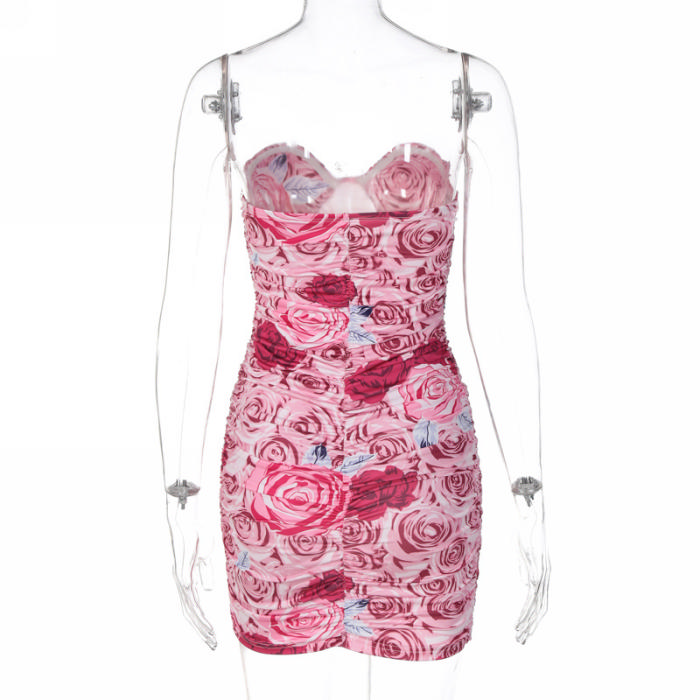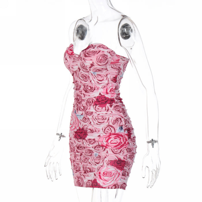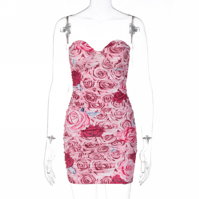 (Real Image)2022 Styles Women Fashion INS Styles Tube Floral Mini DressSKU: #CF22677-1