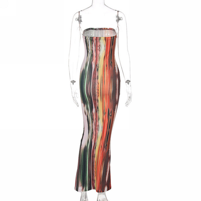 (Real Image)2022 Styles Women Fashion INS Styles Tube Print Maxi DressSKU: #CF22624-8