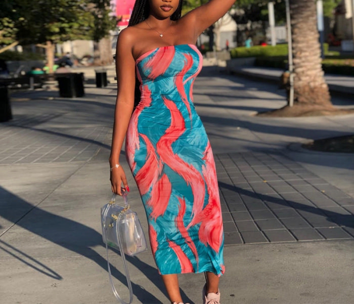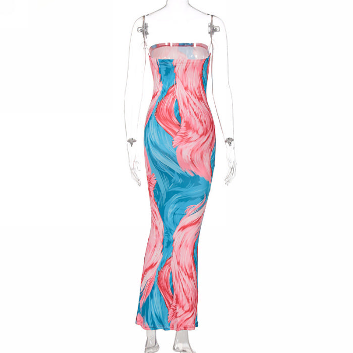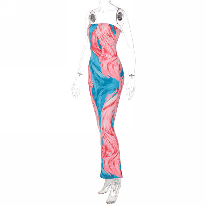 (Real Image)2022 Styles Women Fashion INS Styles Tube Print Maxi DressSKU: #CF22624-7