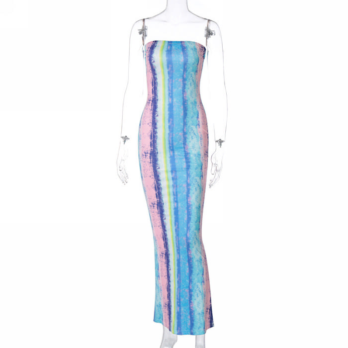 (Real Image)2022 Styles Women Fashion INS Styles Tube Print Maxi DressSKU: #CF22624-5