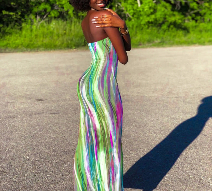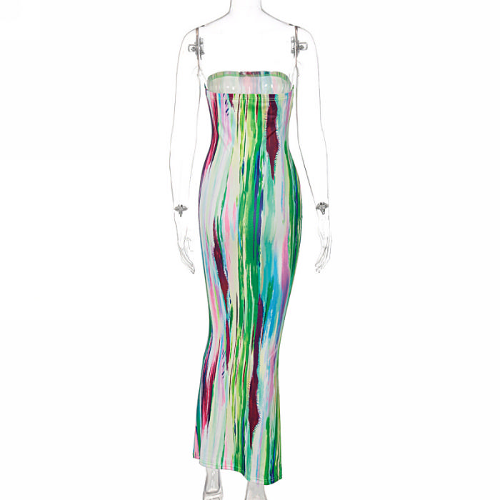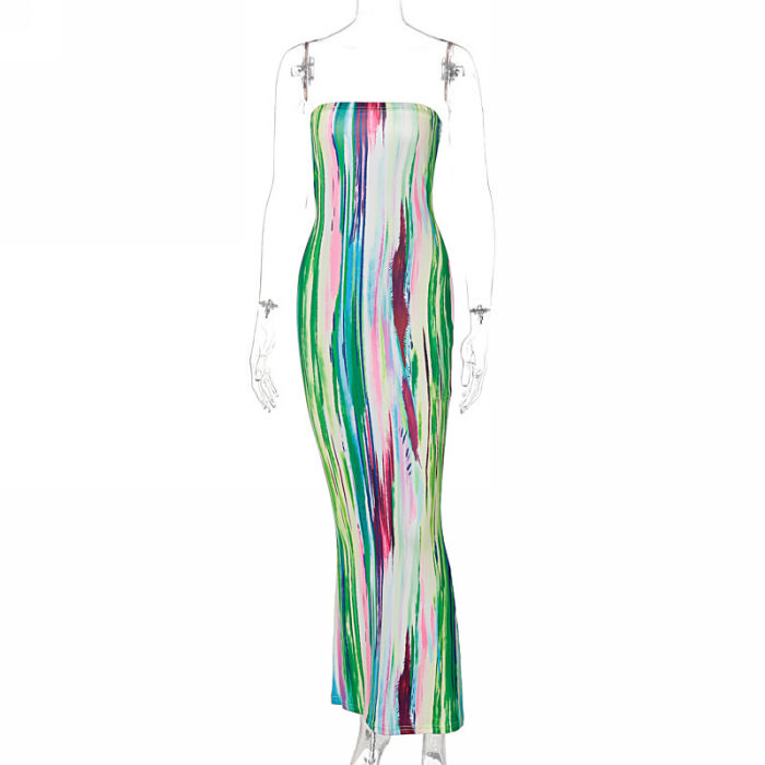 (Real Image)2022 Styles Women Fashion INS Styles Tube Print Maxi DressSKU: #CF22624-3