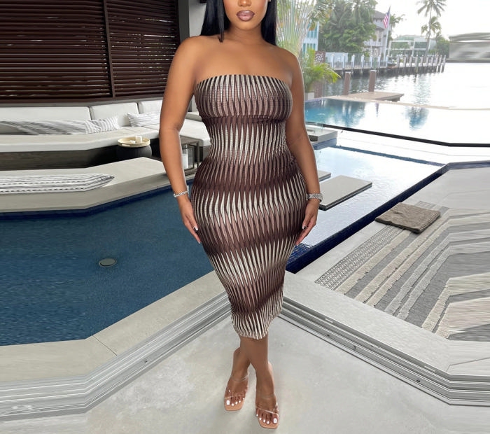 (Real Image)2022 Styles Women Fashion INS Styles Tube Print Midi DressSKU: #CF59077-1