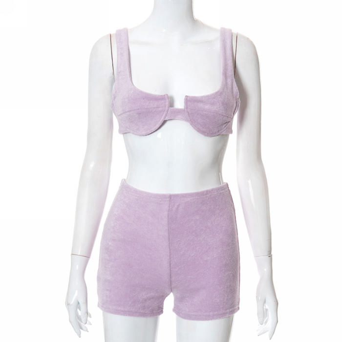 (Real Image)2022 Styles Women Fashion INS Styles Velvet Short Two Piece SuitSKU: #OEM6570-1