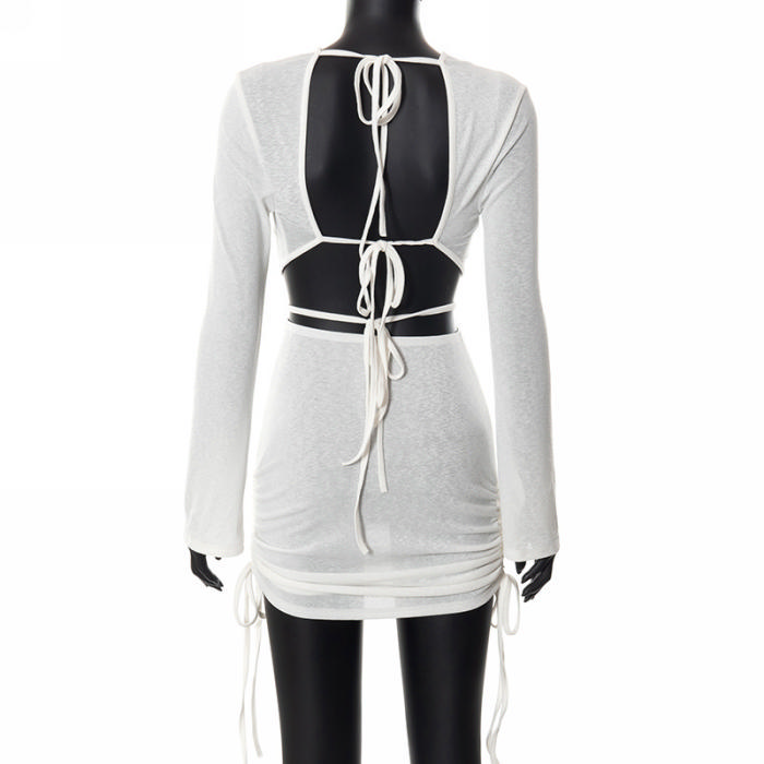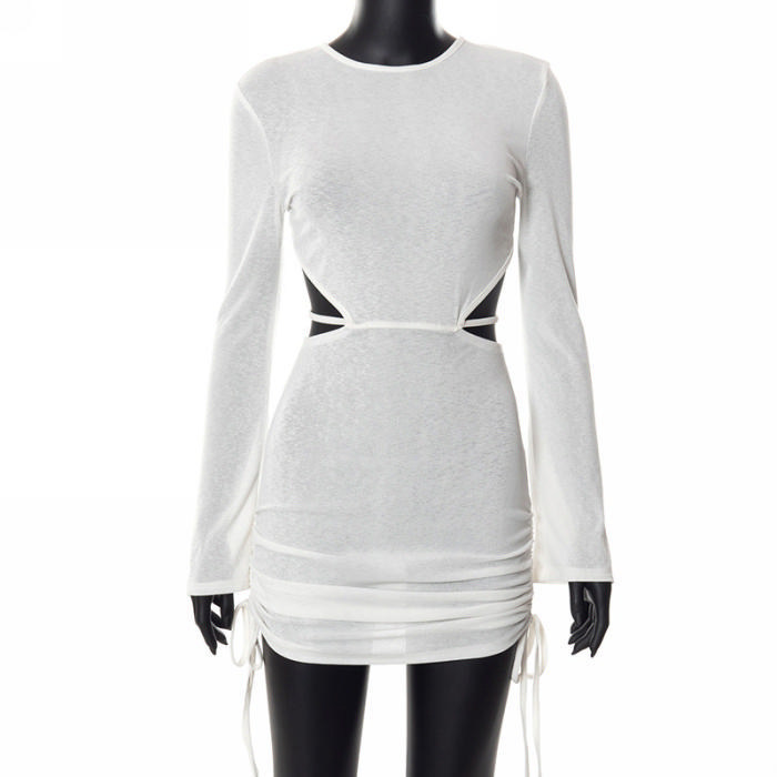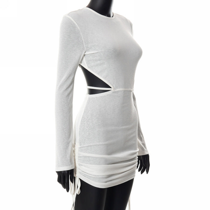 (Real Image)2022 Styles Women Fashion INS Styles White Cut Out Mini DressSKU: #OU0036-1