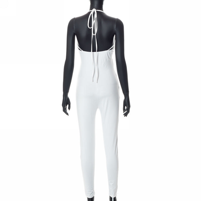 (Real Image)2022 Styles Women Fashion INS Styles White Cut Out Strap JumpsuitSKU: #CF47062-1